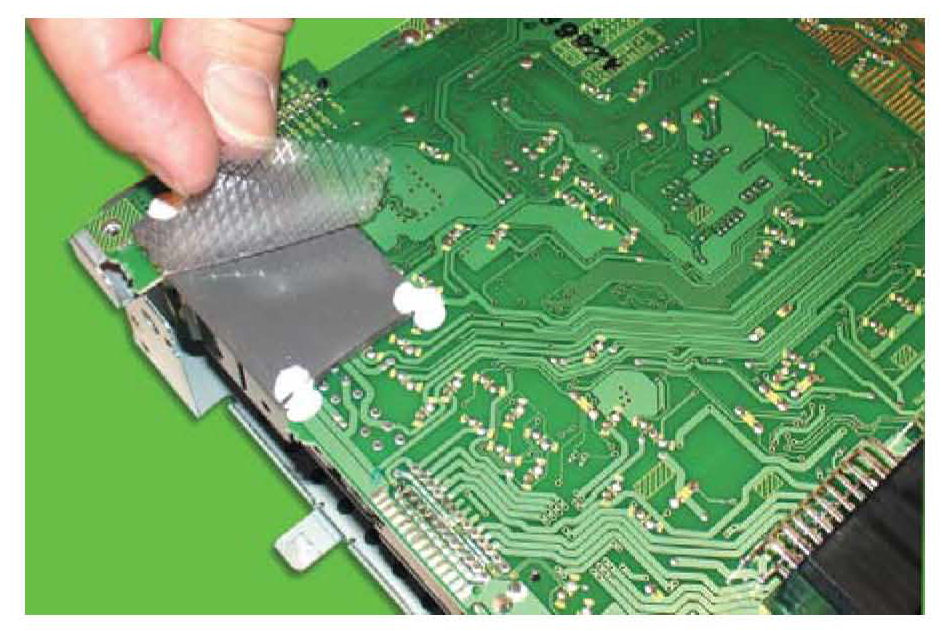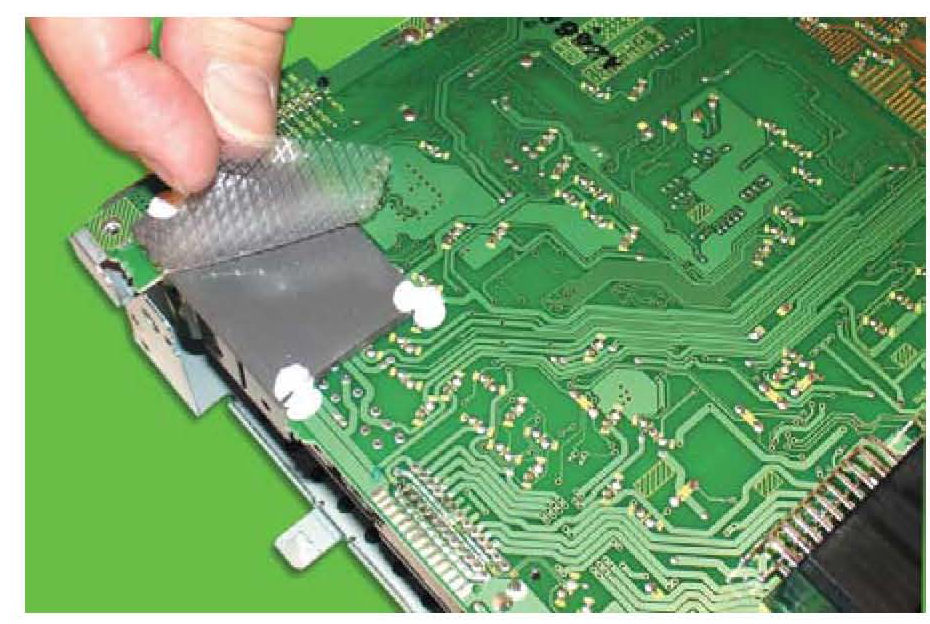 14. Carefully remove the protective cover from the gray thermal pad on the replacement PCB.