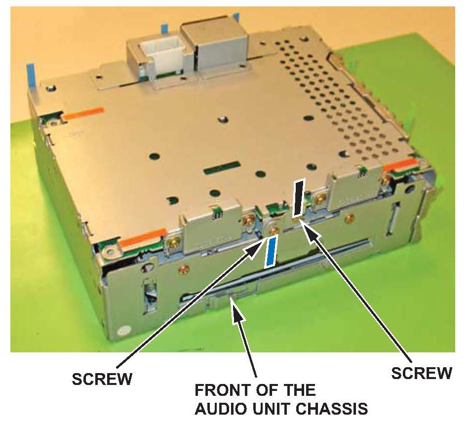 ^ If there are any problems with the audio unit or the HVAC controls, recheck all connections that were disconnected during the repair, including the ribbon cable to the PCB. If the radio still does not function correctly, refer to Service Bulletin 06-001, Audio, Navigation, and RES Unit In-Warranty Exchange, and Audio and DVD Player Out-of-Warranty Repair; for audio unit replacement information.