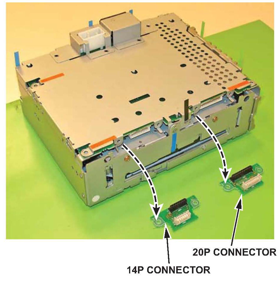 10. Unplug the two connectors from the PCB (printed circuit board) and set them aside. The left one is a 14P connector, the right one is a 20P connector.