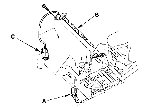 Evaporator Temperature Sensor Replacement1. Disconnect the 2P connector (A) from the evaporator temperature sensor (B), then remove the connector clip (C). Remove the self-tapping screw, and carefully pull out the evaporator temperature.