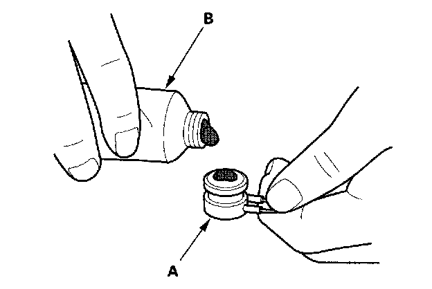 2. Replace the thermal protector (A) with a new one, and apply silicone sealant (B) to the bottom of the thermal protector.