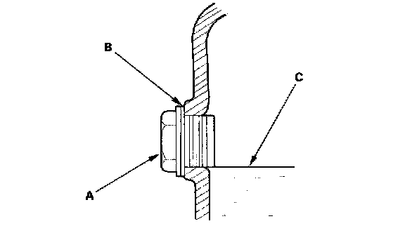 3. Remove the oil filler plug (A) and washer (B), check the condition of the fluid, and make sure it is at the proper level (C).