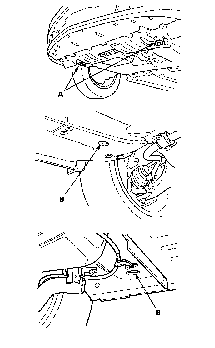 To accommodate flat-bed equipment, the vehicle is equipped with towing hooks (A) and tie down hooks (B).