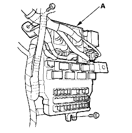 4. Disconnect the connectors from the fuse side of the under-dash fuse/relay box (A).