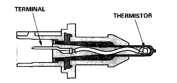 The ECT sensor is a temperature dependent resistor (thermistor). The resistance of the thermistor decreases as the engine coolant temperature increases.