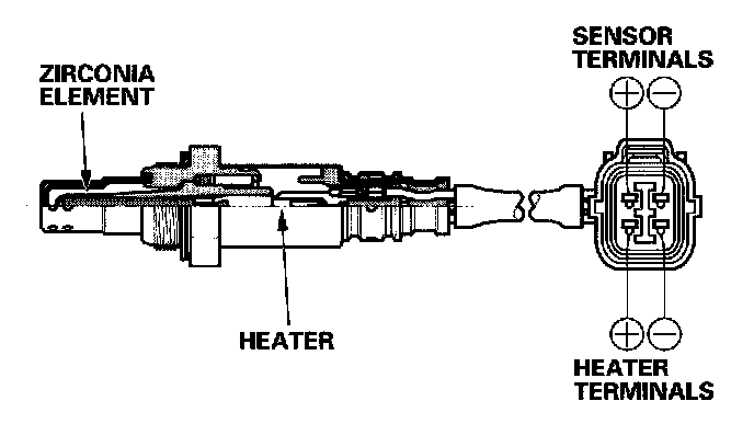 The secondary HO2S detects the oxygen content in the exhaust gas downstream of the three way catalytic converter (TWO, and sends signals to the ECM/PCM which varies the duration of fuel injection accordingly. To stabilize its output, the sensor has an internal heater. The ECM/PCM compares the HO2S output with the A/F sensor output to determine catalyst efficiency. The secondary HO2S is located on the TWC.