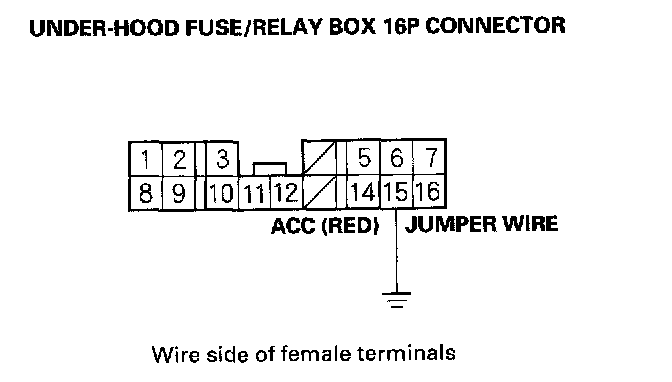 9. Momentarily connect under-hood fuse/relay box 16P connector terminal No.15 to body ground with a jumper wire several times.