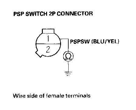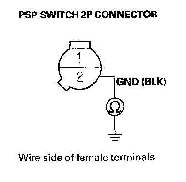 11. Check for continuity between PSP switch 2P connector terminal No.1 and body ground.