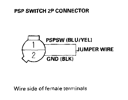 17. Remove the jumper wire from the PSP switch 2P connector.