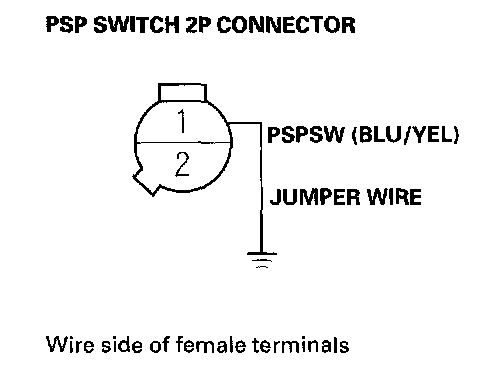 14. Connect PSP switch 2P connector terminals No.1 and No.2 with a Jumper wire, then start the engine.