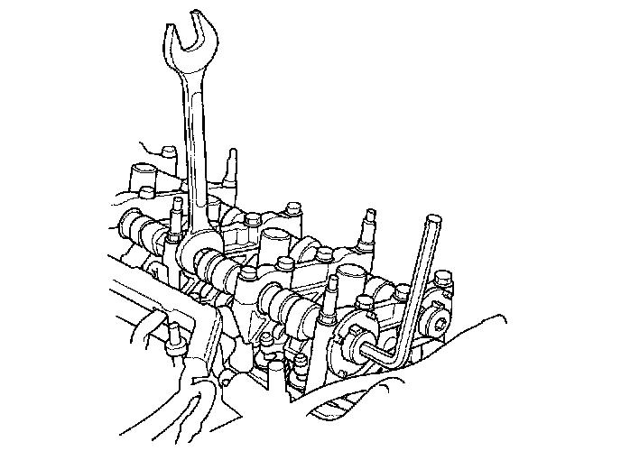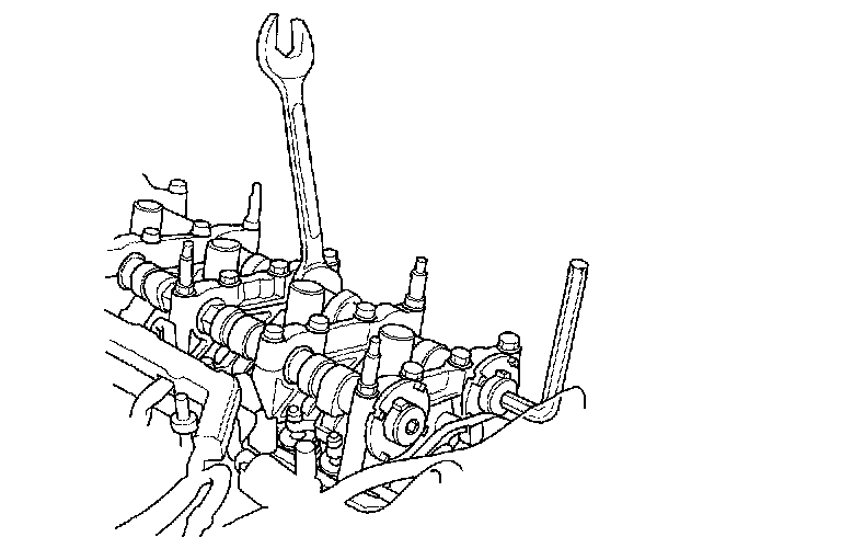2. Hold the camshaft with an open-end wrench, then loosen the bolt.