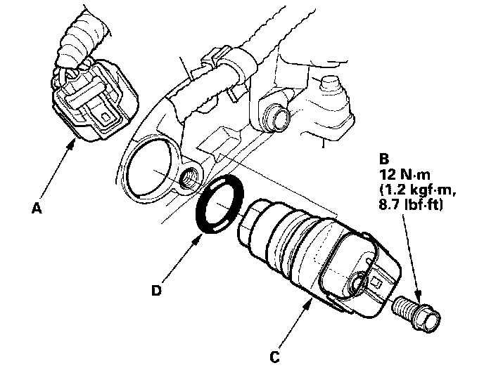 Install the sensor in the reverse order of removal with a new O-ring (D).