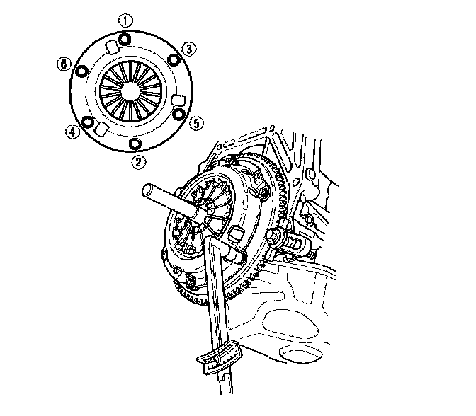 Torque the mounting bolts in a crisscross pattern. Tighten the bolts in several steps to prevent warping the diaphragm spring.