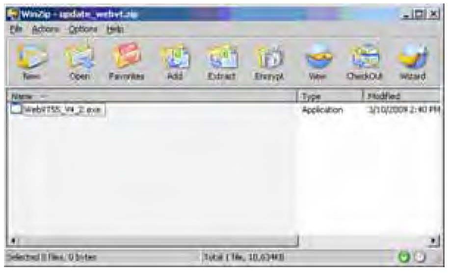 5. The WinZip - update_webvt.zip screen appears. Double-click on the .exe file.