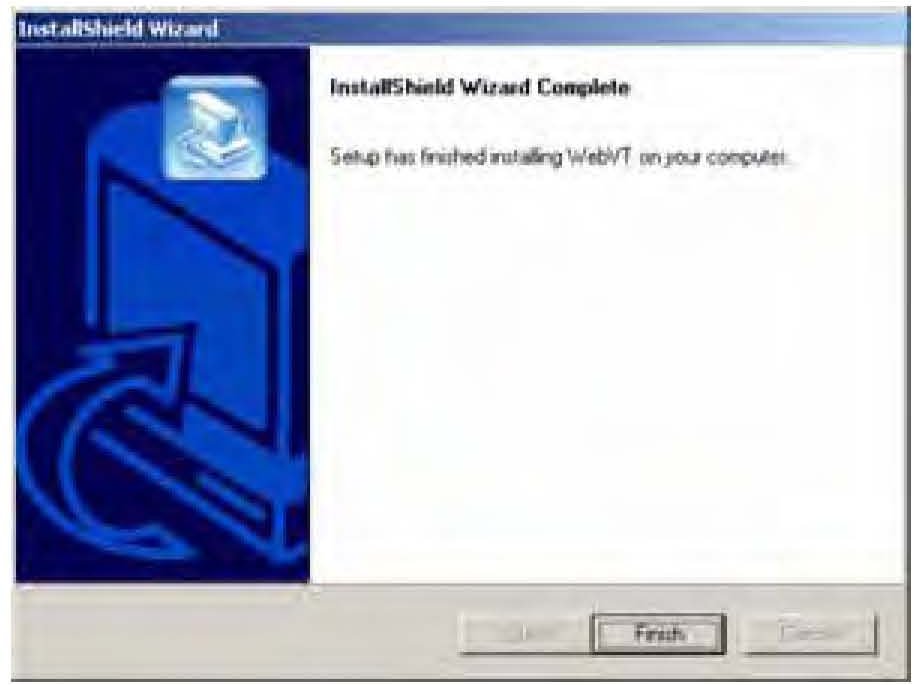 10. The InstallShield Wizard will prompt you when WebVT is installed on your computer. Select Finish.