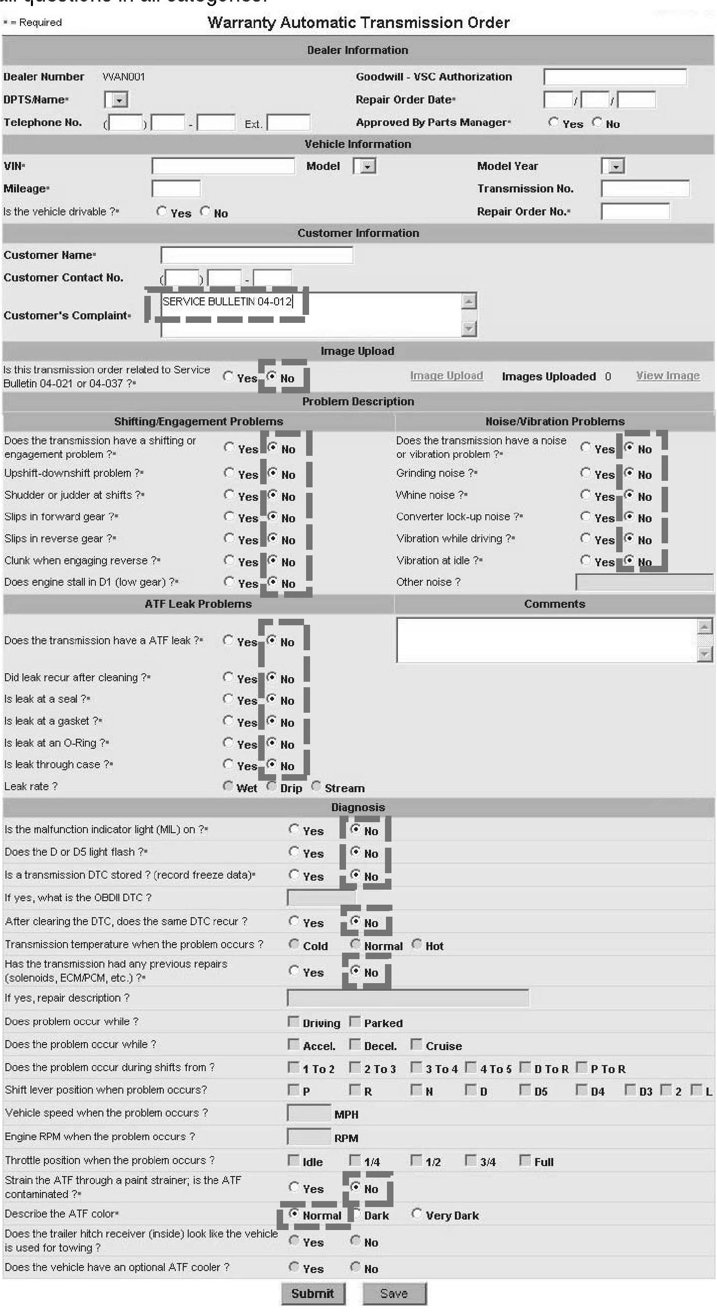 *2. Go to the Warranty Automatic Transmission