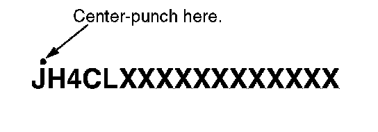 2. Center-punch a completion mark above the first character of the engine compartment VIN.