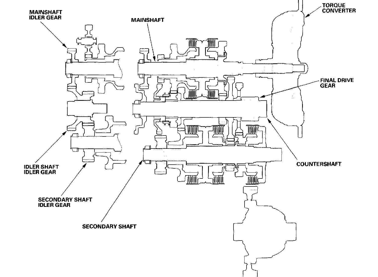 - The mainshaft idler gear drives the secondary shaft via the idler shaft idler gear and secondary shaft idler gear.