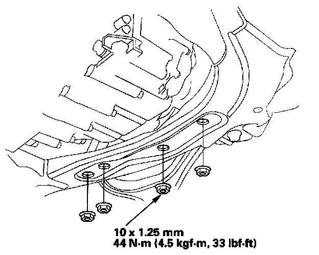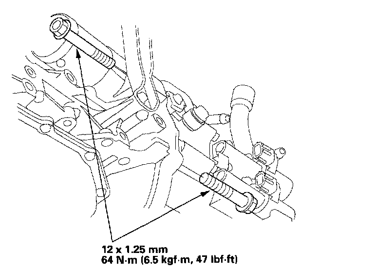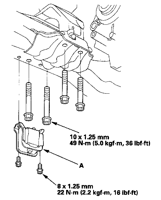 5. Attach the transmission to the engine, then install the transmission housing mounting bolts.