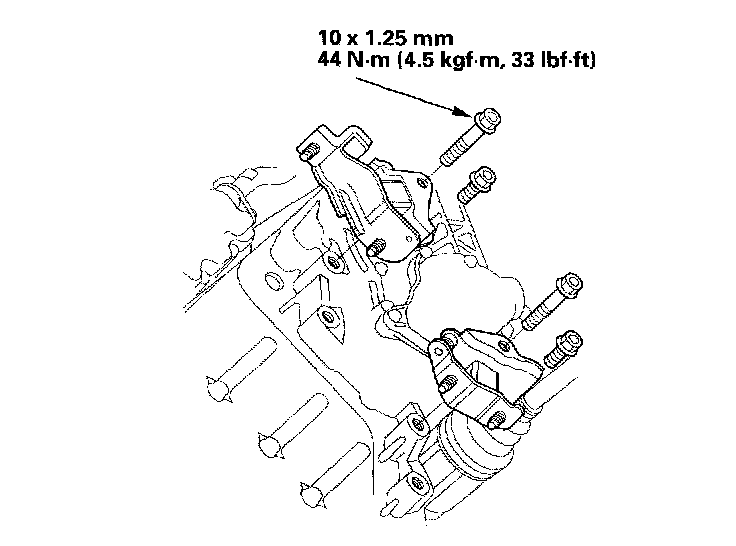 43. Remove the engine support hanger, and remove the special tool adapter from the engine.