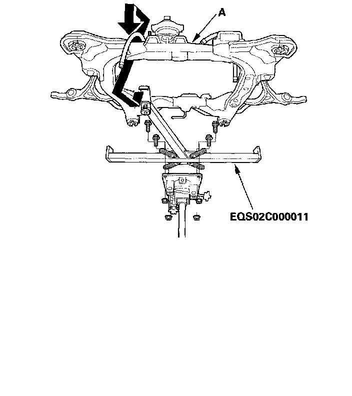 18. Support the front subframe (A) with the special tool and a jack, and lift it up to body.