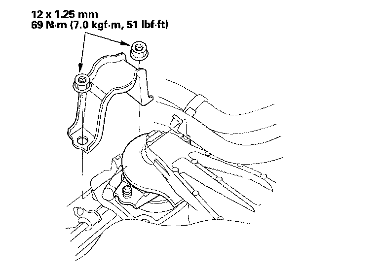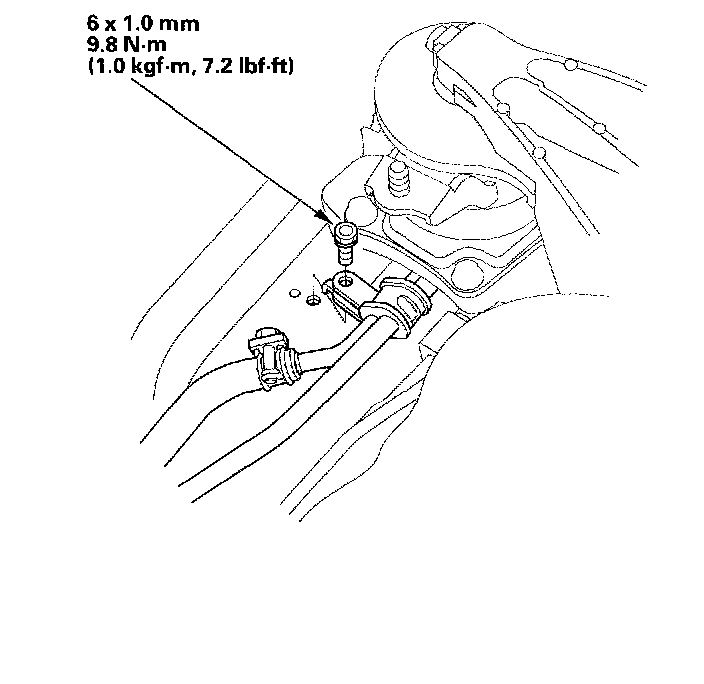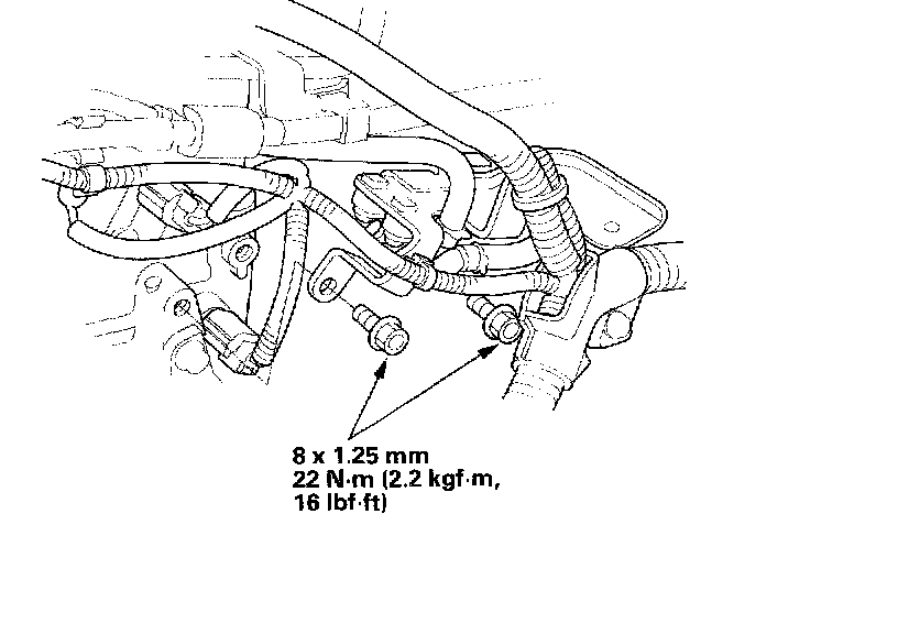 29. Secure the power steering fluid line bracket on the subframe with the bolt.