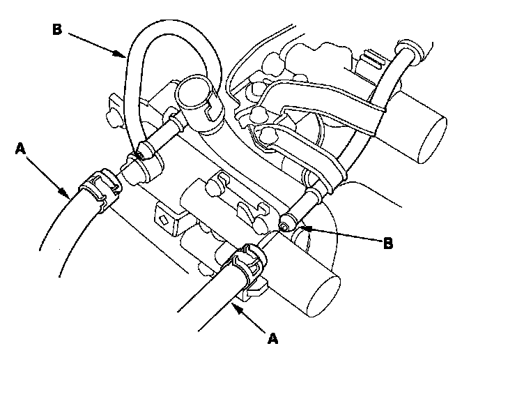 49. Connect the ATF cooler hoses (A) to the ATF cooler lines (B), and secure the hoses with the clips.