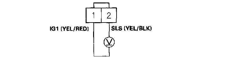 9. Measure the voltage between shift lock solenoid connector terminals No. 1 and No. 2 while pressing the brake pedal.