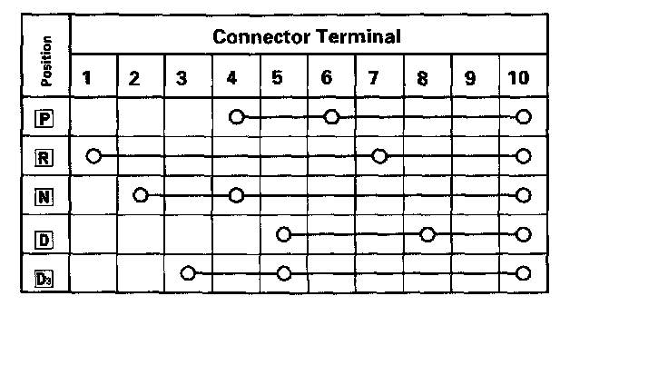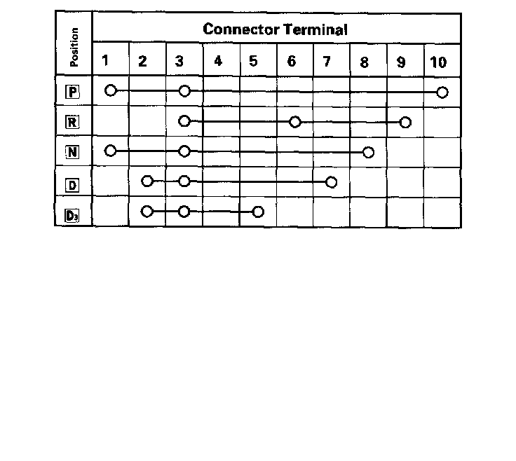 3. If there is no continuity between any terminals, remove the transmission range switch cover, and disconnect the connector at the switch.