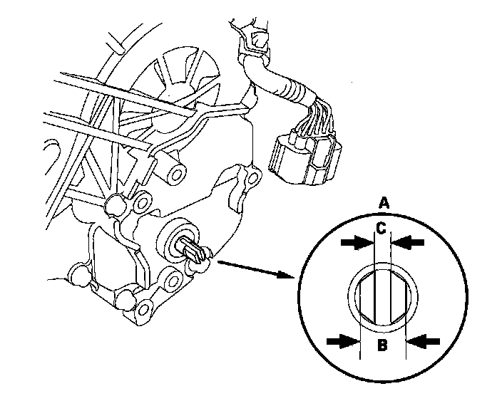 7. The measurement of the control shaft end is within the standard, replace the transmission range switch. If the measurement is out of the standard, repair the control shaft end, and recheck the transmission range switch continuity.