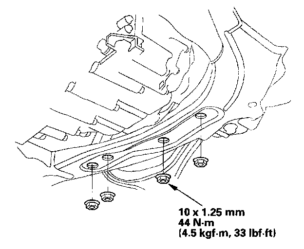 8. Place the transmission jack under the transmission, and remove the transmission lower mount nuts.