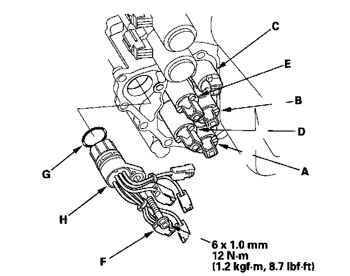 20. Install the new O-ring (G) on the shift solenoid harness connector (H), and install the connector in the transmission housing.