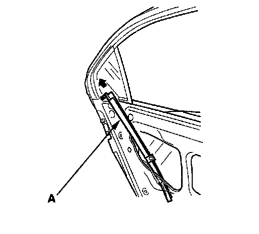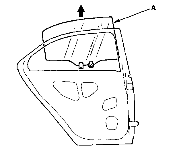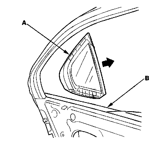 6. Remove the quarter glass (A). Take care not to damage the outer weatherstrip (B).