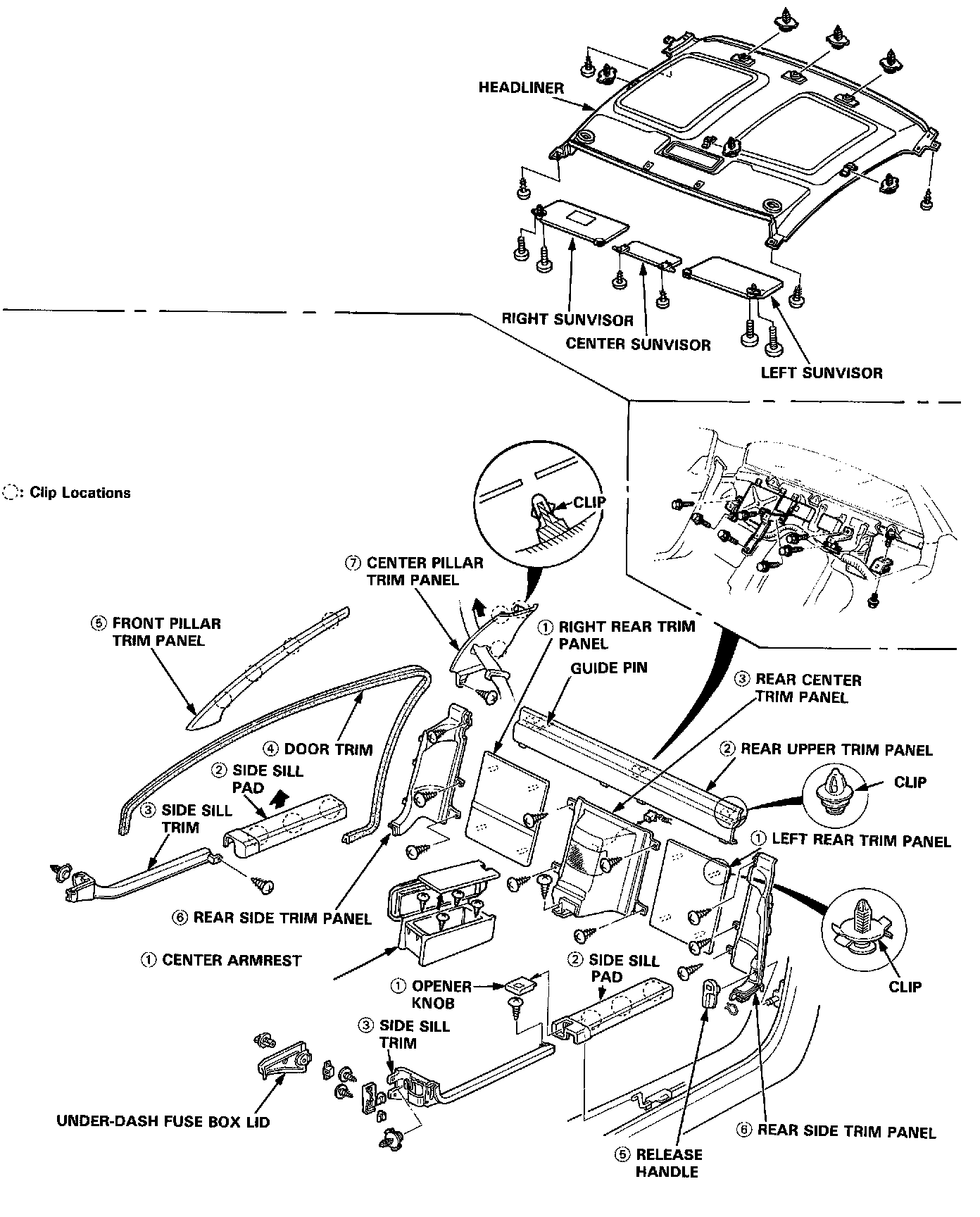 - When installing the headliner, be careful not to fold or bend it. Also, be careful not to scratch the body.
