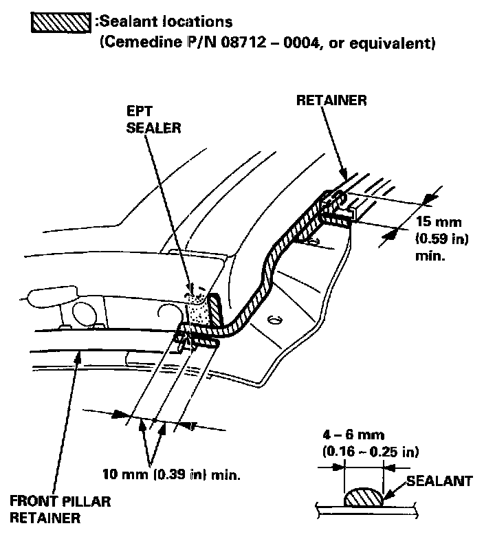 - Be careful not to touch the front pillar retainer where sealant will be applied.