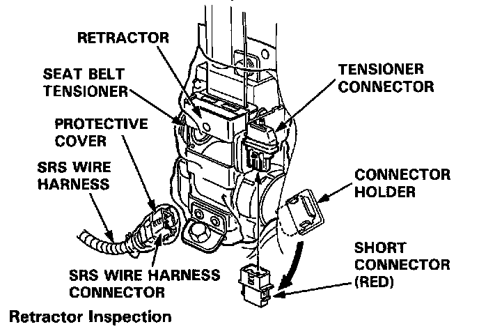 InspectionSRS wire harnesses are routed near the retractor.