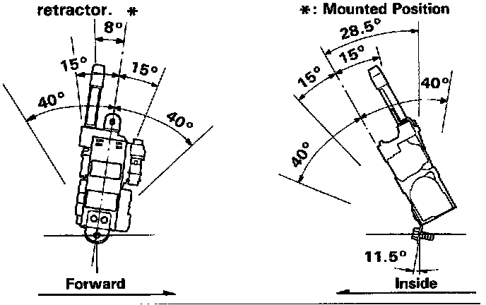 2. Make sure that the seat belt does not lock when the retractor is leaned slowly up to 15° from the mounted position. The seat belt should lock when the retractor is leaned over 40°.