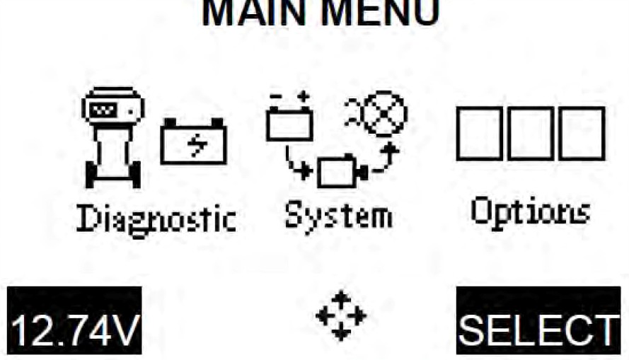 5. In the main menu, scroll over to the SYSTEM icon, and press the SELECT key.
