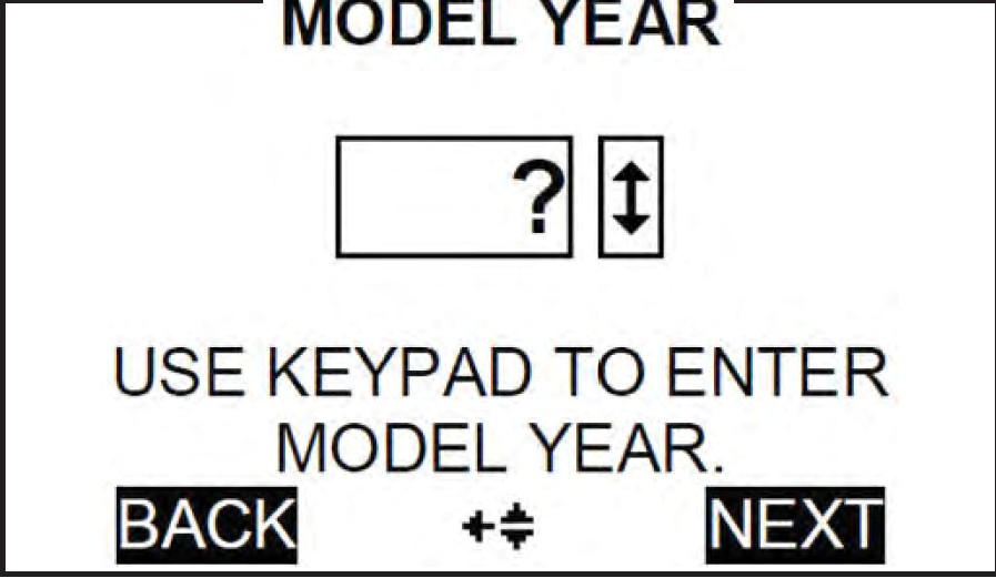 9. Scroll up or down to select the model year of the vehicle being tested, and press NEXT to continue.