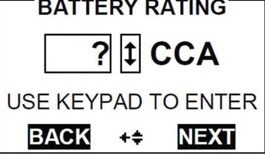 12. Enter the battery's CCA, and press NEXT to begin the battery testing.