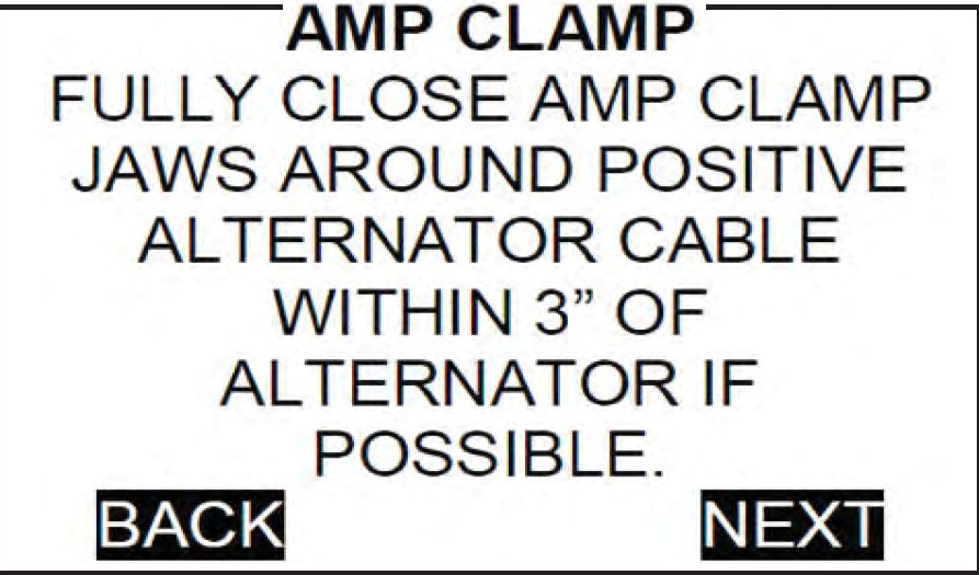 8. When prompted, verify that the test cables and clamps are in good working order, and press NEXT to continue.