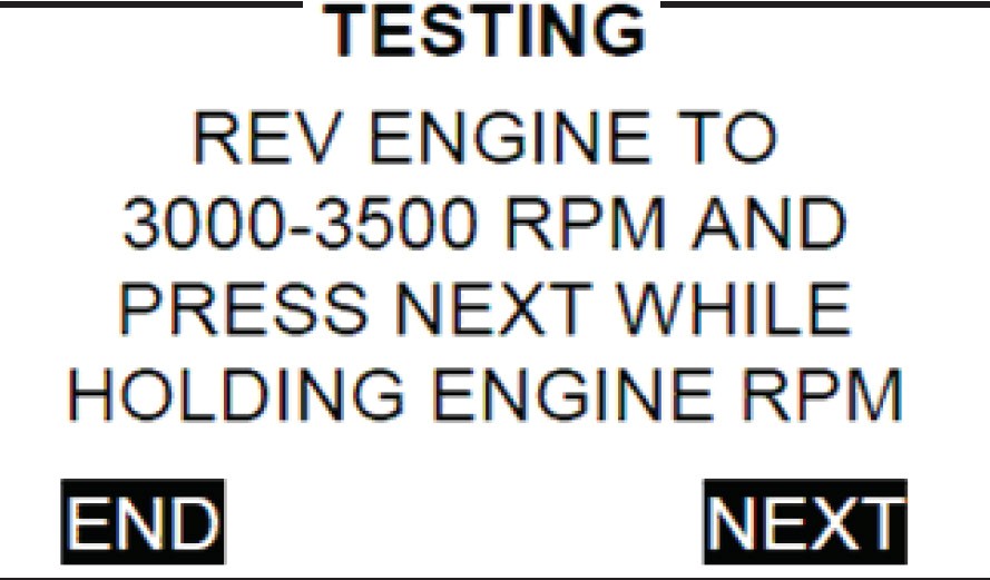 NOTE: If you do not rev the vehicle within the first 10 seconds, or the tool cannot detect the engine speed, you will have to rev the engine to 3,000-3,500 rpm, hold at that rpm level, and hit NEXT to continue.