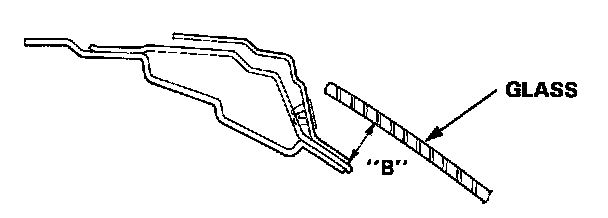 f. Move the glass up and down to seat it, then measure the clearance "B" at the designated locations.