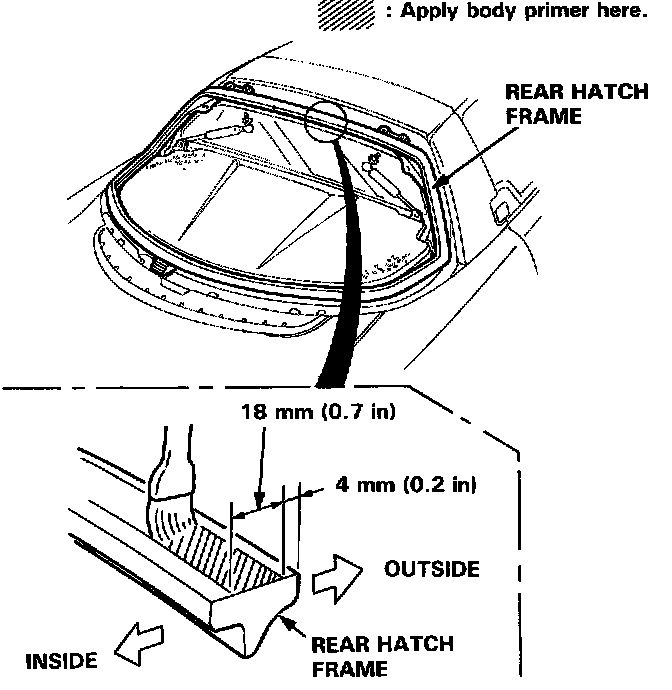 6. With a brush, apply a light coat of body primer to the original adhesive remaining around the rear hatch frame.