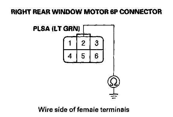 11. Check for continuity between right rear window motor 6P connector terminal No. 2 and body ground.