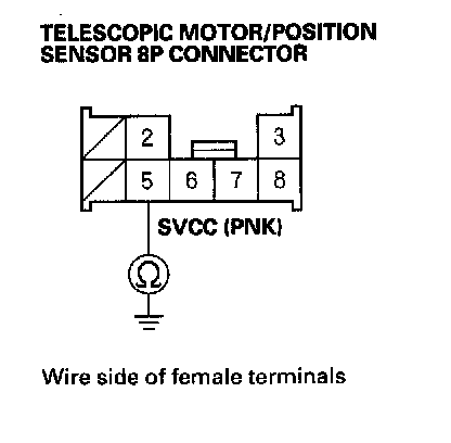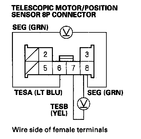 16. Measure voltage between telescopic motor/position sensor 8P connector terminals No. 6 and No. 8 and between terminals No. 7 and No. 8.