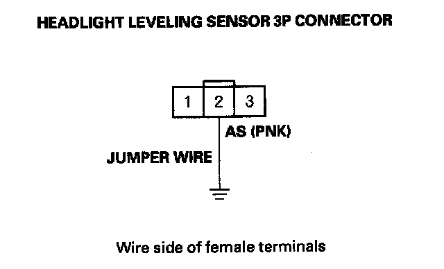 9. Connect headlight leveling sensor 3P connector terminal No. 2 to body ground with a jumper wire.