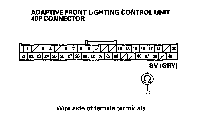 12. Check for continuity between adaptive front lighting control unit 40P connector terminal No. 37 and body ground.