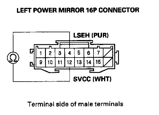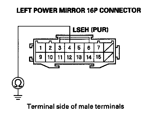 12. Check for continuity between left power mirror 16P connector terminals No. 4 and No. 12.