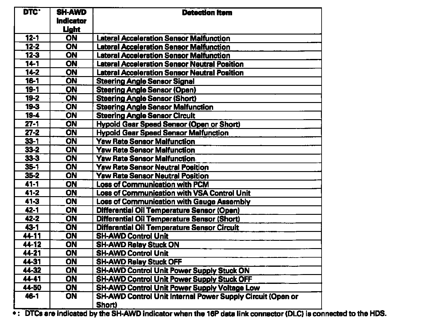 DTC List - Differential Assembly (VTM-4)